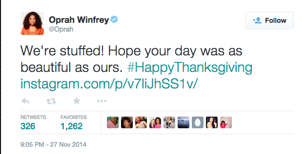 Noticed the blue checkmark, which indicates that Twitter has manually verified this account is in fact operated with the consent of Oprah Winfrey