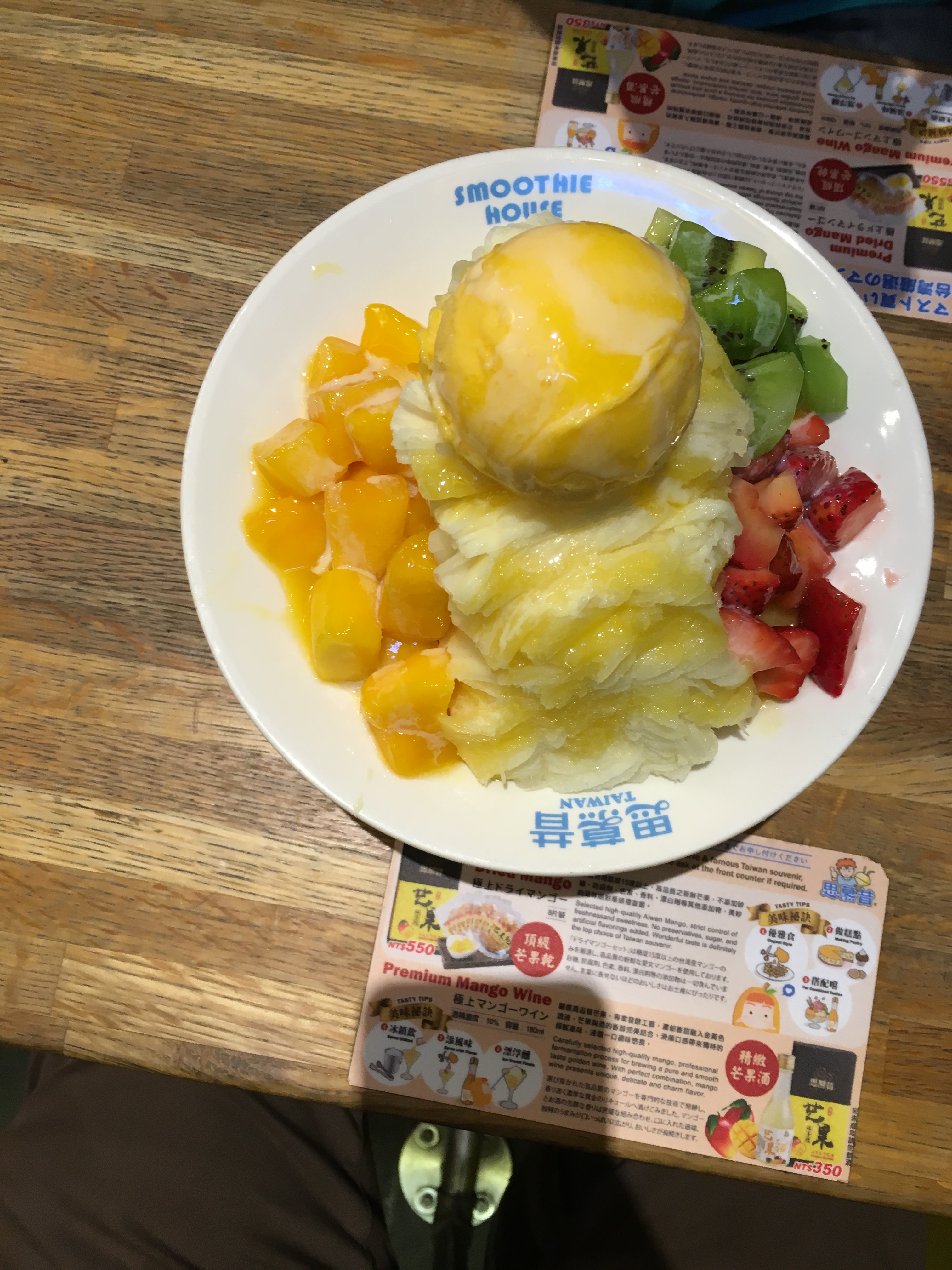 Mango Shave Ice Published April 27, 2016 at 3024 × 4032 in Taipei: A City of Food ← Previous Next → Famous mango shave ice at the Smoothie House— this is advertised heavily all over the nearby metro station. It worked.