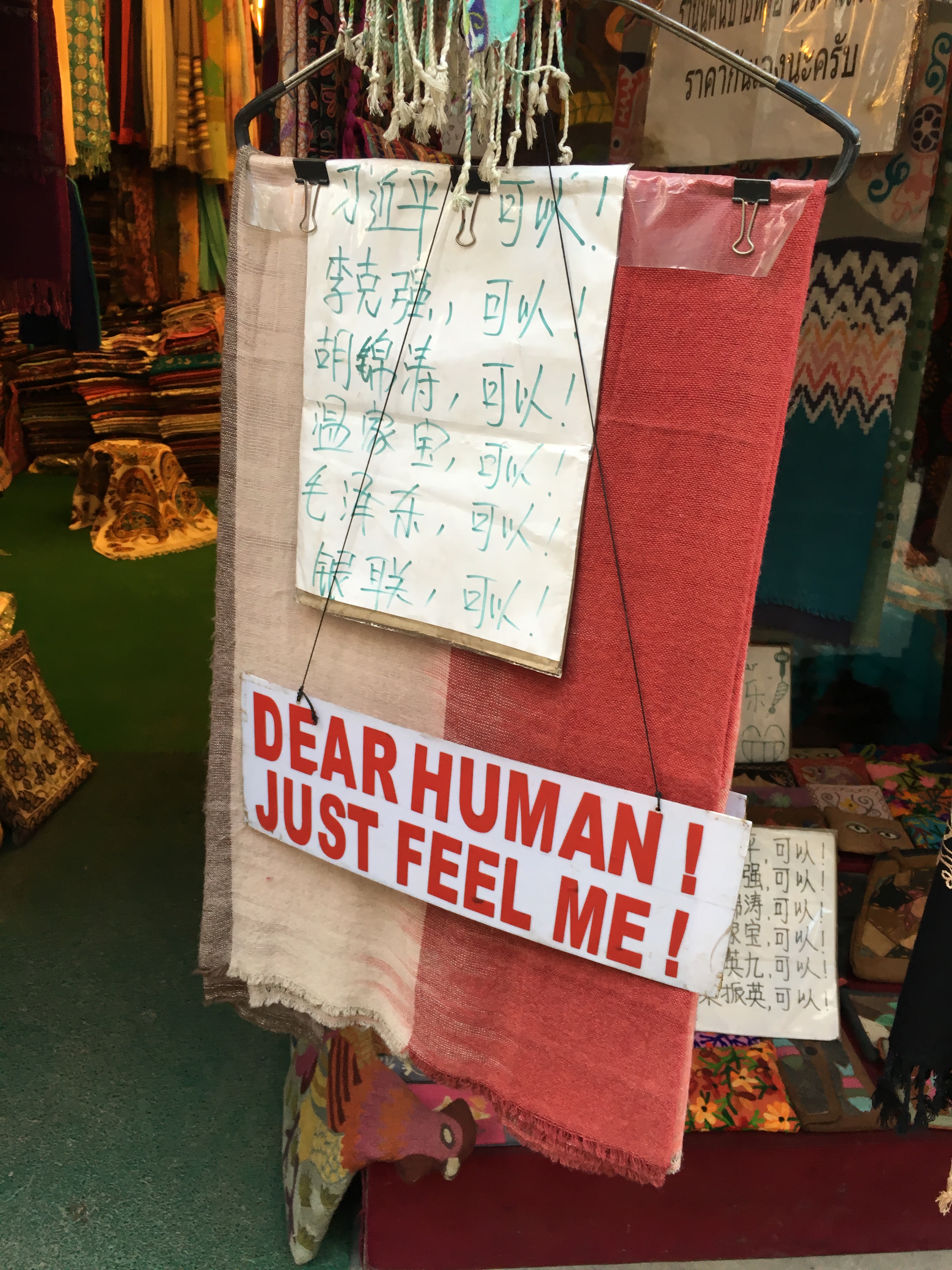 Nepalese Scarves Published August 29, 2016 at 3024 × 4032 in Nepal Photo Supplement: Thamel ← Previous Next → Multilingual scarf salesman. (It did feel pretty nice) Merchants in Thamel try to attract business by any means possible