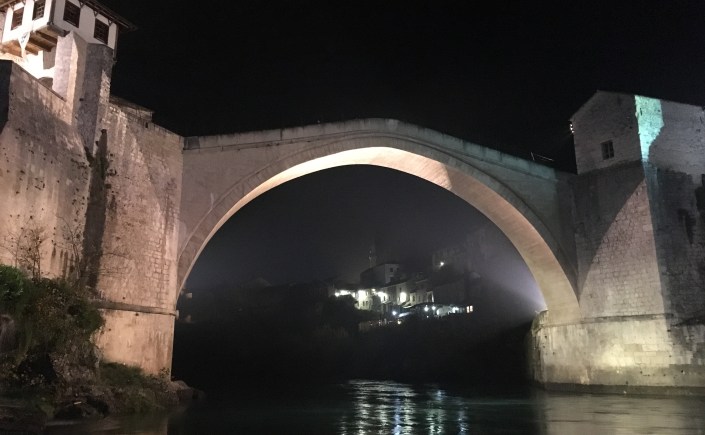 My traveling partner Ollie and I arrived in Mostar, Bosnia and Herzegovina, on a bus from Sarajevo, where we’d spent a few days learning the history of the Siege of Sarajevo—the longest city siege in the history of modern warfare. Our friends in Sarajevo told us NATO forces broke the Serbian siege, saved the city, and the lives of every Bosnian living there. Before that, we’d been in Belgrade, Serbia, where a huge banner flying in front of parliament memorialized fallen Serbian soldiers as “Victims of NATO Aggression.”