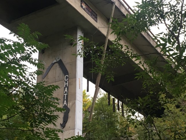Under a nearby bridge, enterprising local climbers have built a DIY dry-tooling course. I may have to come back in winter and sample the waterfall ice…