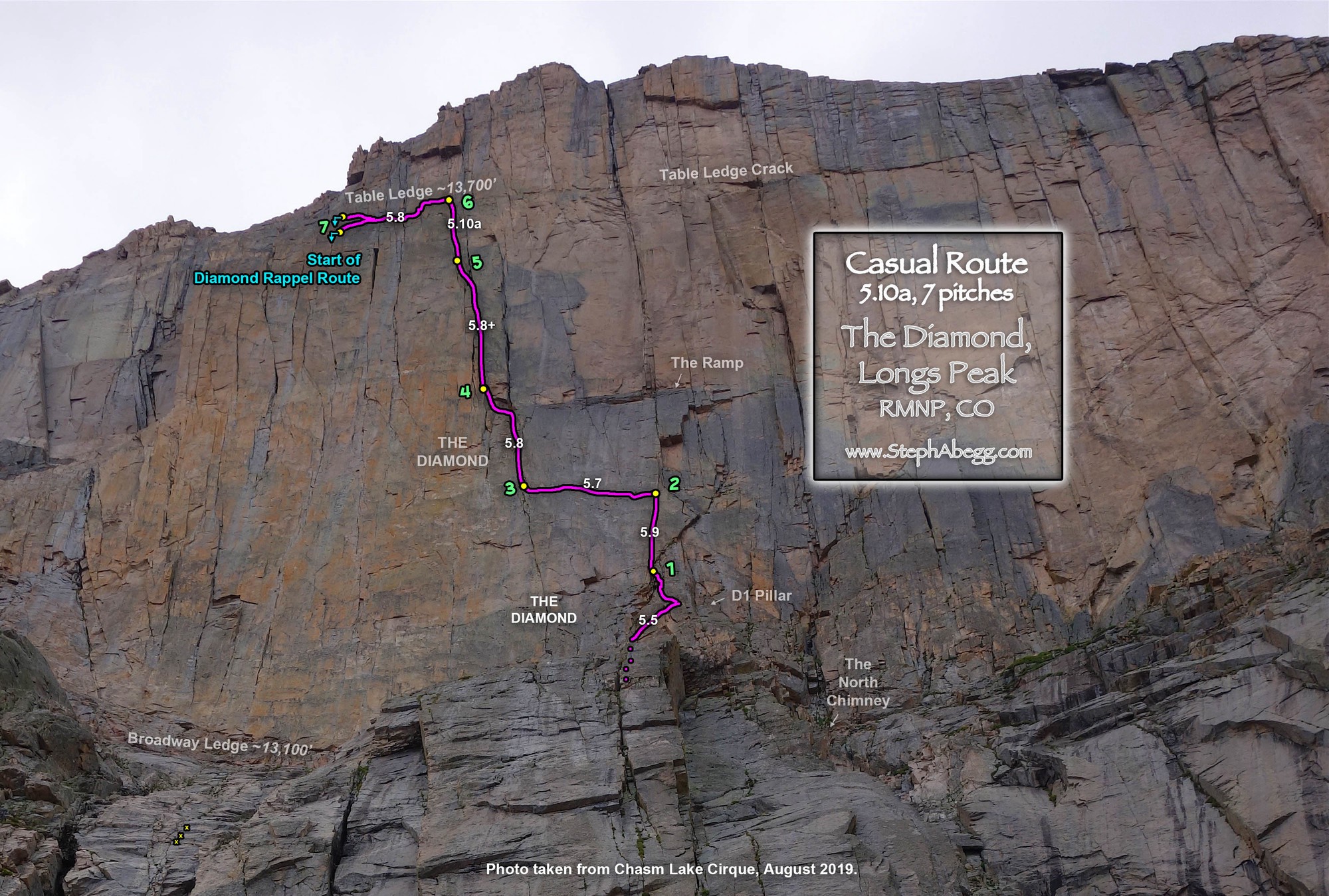 - Beta: Plentiful on Mountain Project. Richard Rossiter’s guidebook to Rocky Mountain National Park also has an excellent chapter on the Diamond.