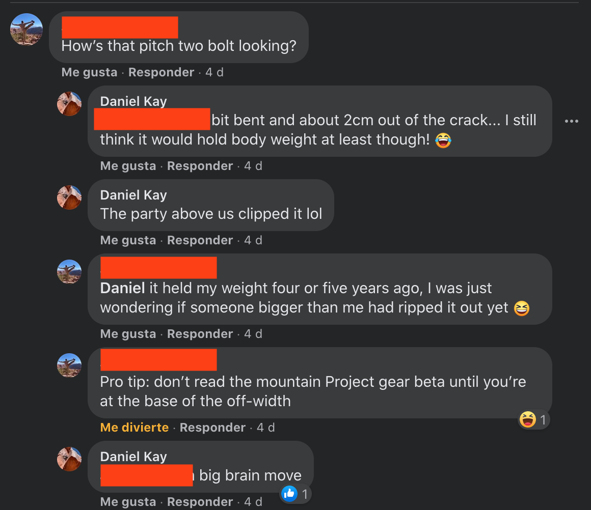 Pitch 2 contains the (short) offwidth crux and famously janky bolt — a decades old relic which inspires NO confidence. Bring a number six cam and you won’t have to stress about the bolt. Although my buddy who weighs easily 200 pounds says he clipped it…