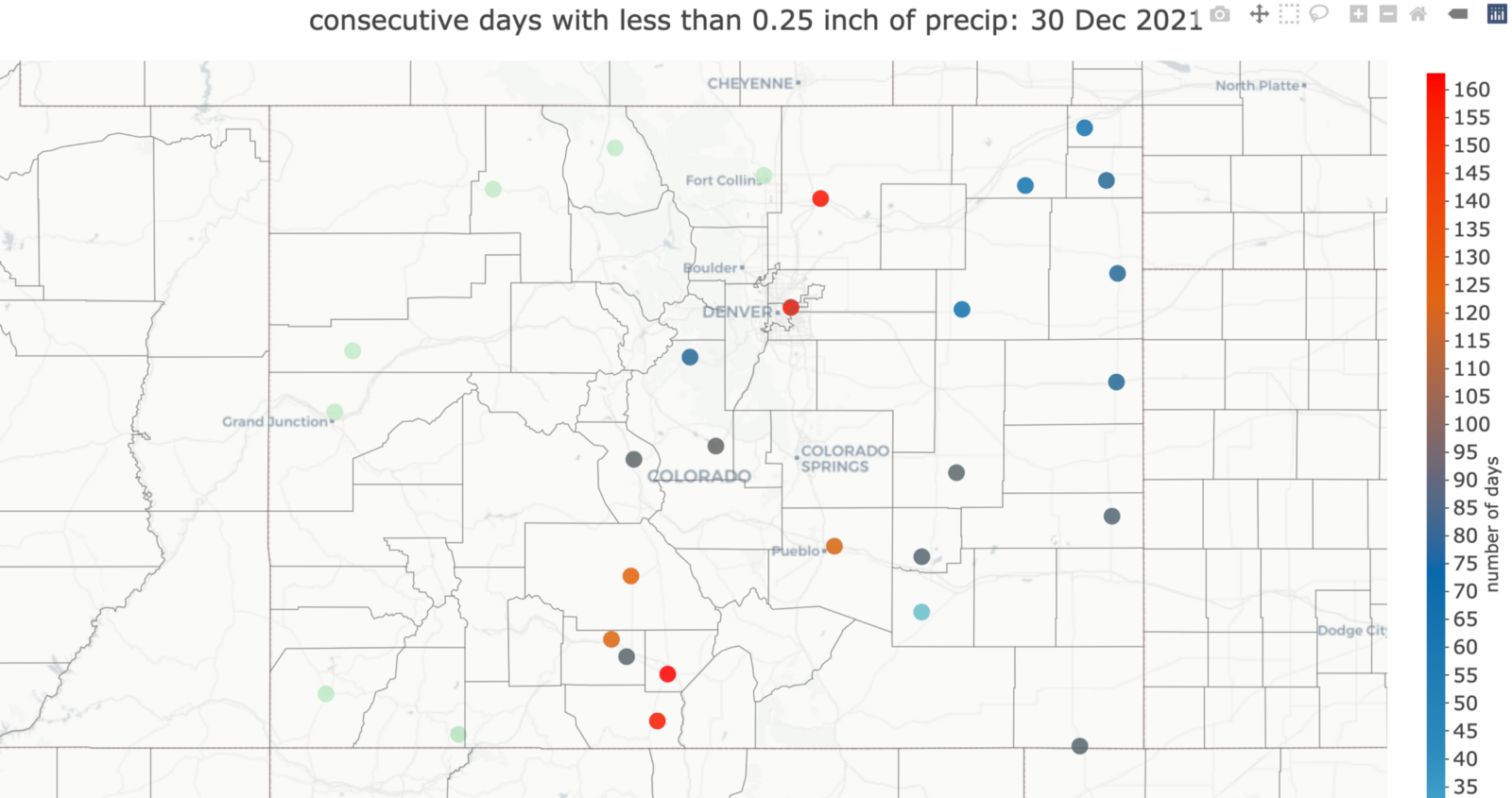 I got my first swings of ice season on October 22nd, but if you look at the pictures, it’s easy to see that winter hadn’t arrived. It never did. In fact, if we visit the Colorado State University rainfall tracker, we can see that it had been 155 days since Denver registered more than .25″ of liquid precipitation in a day.