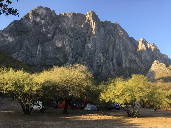 EPC is well-known among American climbers — many of the routes were bolted starting in the 1990s by climbers from Austin, Texas (just a few hours drive away). The early climbers & route developers, American and Mexican, slept under gazebos in the canyon. Eventually, a local man named Homero welcomed the climbers to camp on his land at the mouth of the canyon, and Homero’s Climbing Ranch was born. Now, the area outside of Parque Potrero Chico sports several lodging options in addition to Homero’s: walled compounds offering camping, rooms, and hostel-style accommodation. In winter, when we visited, you will find these hotels mostly full of climbers.