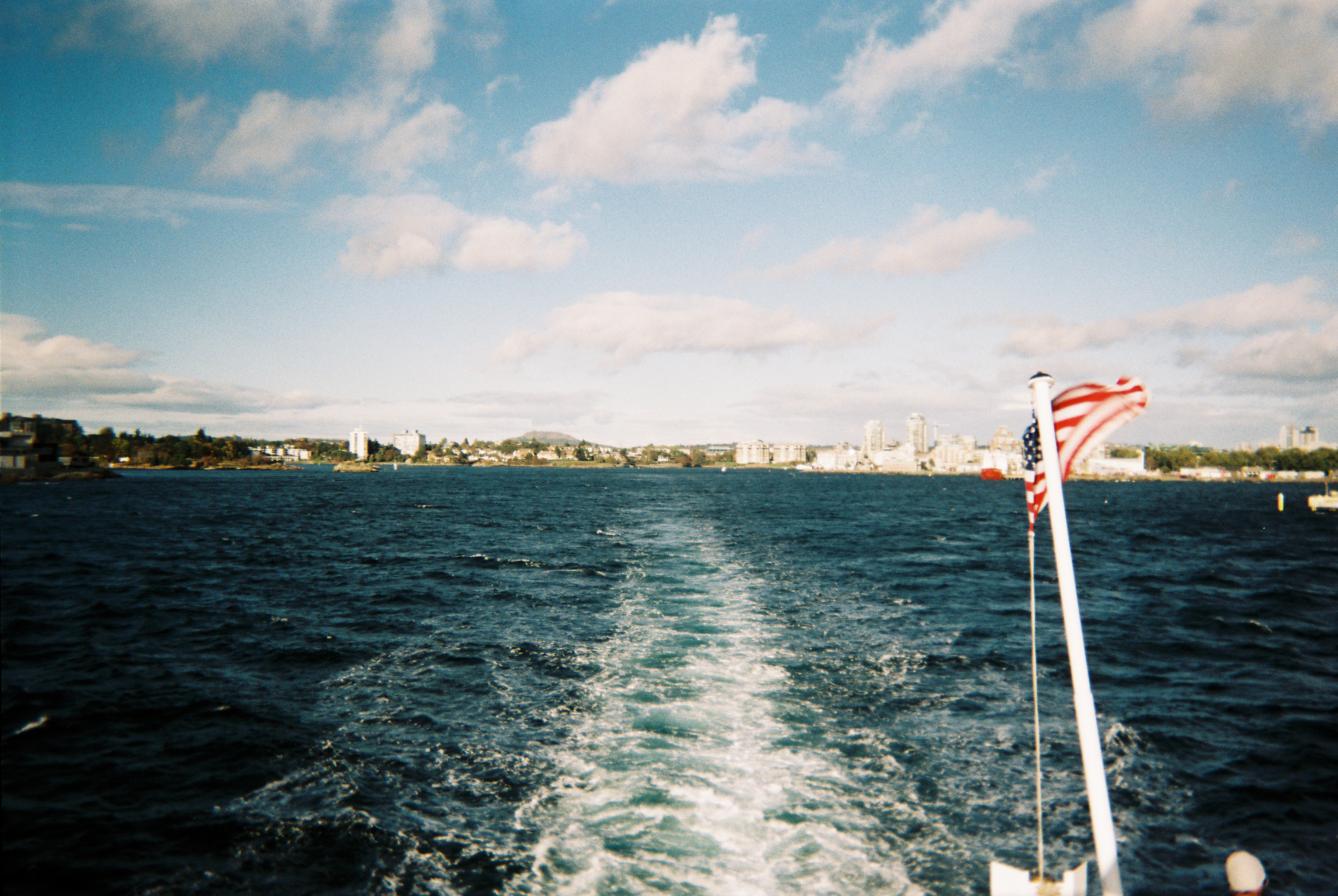 I return to the USA via ferry. I stand on the bow and watch the Canadian flags recede in the distance, the stars and stripes fluttering next. to me. I phone Madi. She does not answer. I phone my mother. We chat, briefly. She tells me her list for Washington, and Oregon, and tells me of the time she drove across the country, age 17. I’ve heard the story before. I will hear it again. I’ll check those places out, thanks mom, I say.