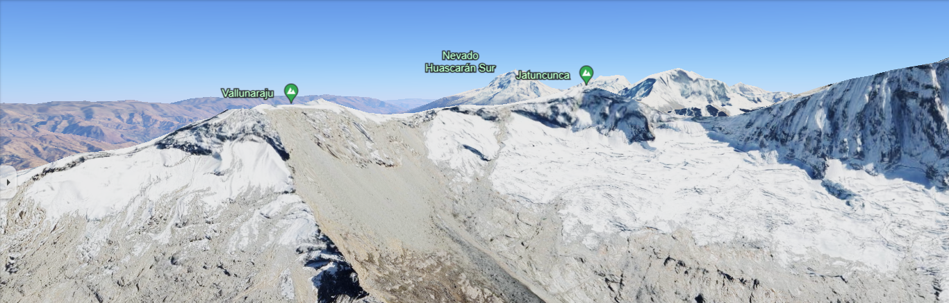Still, we knew things would have changed. We paid a visit to the Casa de Guias to inquire about current conditions. The normal route is good, yes we heard. But what about the North Ridge? Does anyone climb that? North Ridge? No… Not this season. Last year one team tried; that we know of. But sometimes people don’t report their climbs. And Calum spoke of being “called” to Vallunaraju. So we went to Google Earth, to see if we could find updated satellite imagery which might give us an idea of current condition.