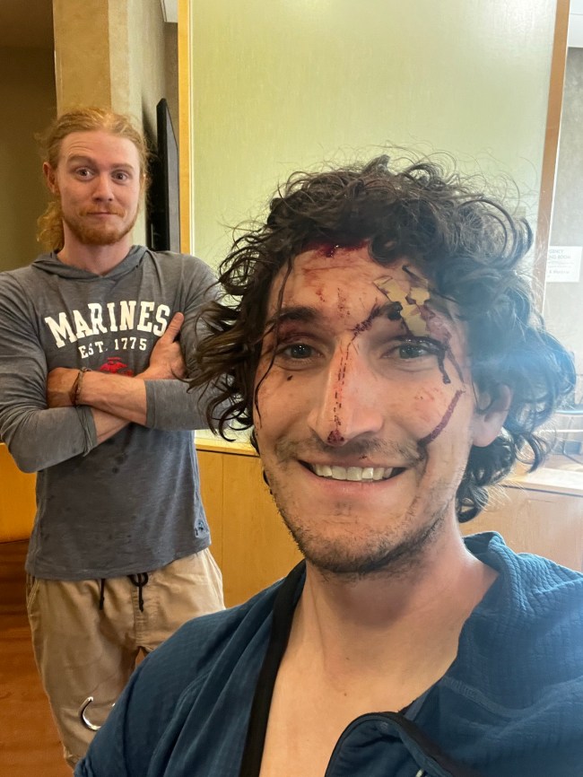 “We all heard ‘sixty foot fall’ and had to see,” one PA tells me. The attention is intense but brief. They are expecting me to be clinging to life, but it is not so. Quickly, professionally, they arrive at a conclusion: stitches for the face, x-rays for the foot, and a tetanus shot for the road rash. No need for the IV.